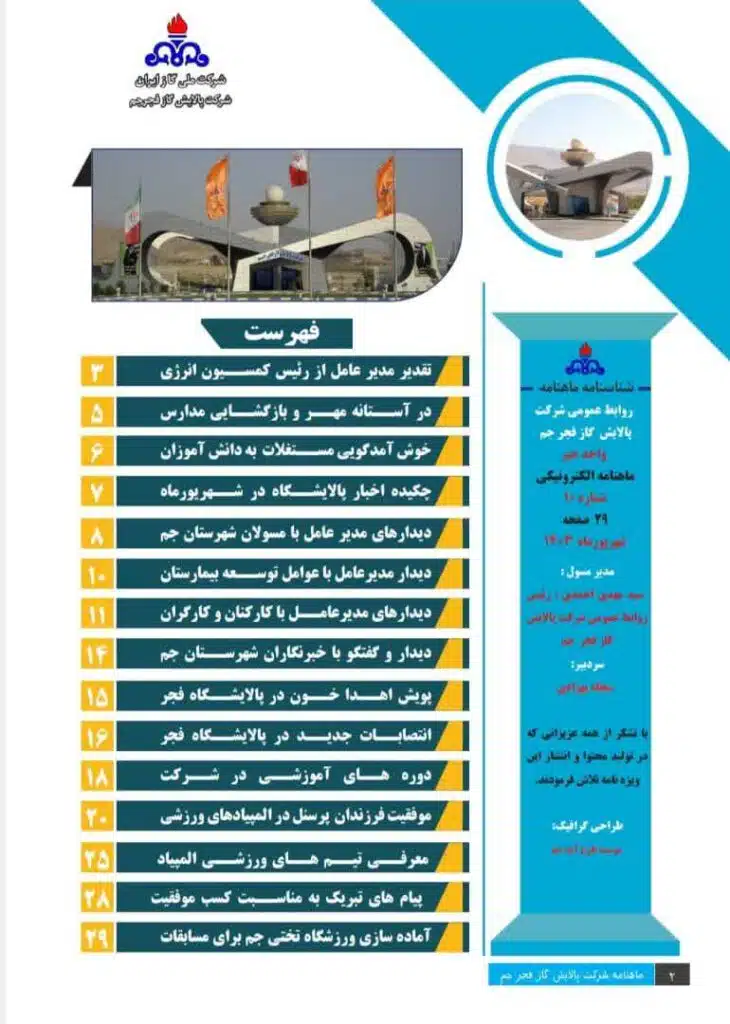 انتشار ماهنامه الکترونیکی شرکت پالایش گازفجرجم ویژه شهریور ماه ۱۴۰۳